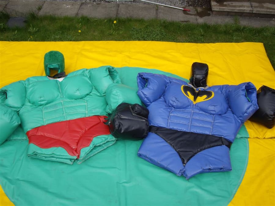 Batman v Hulk adult superhero wrestling suits. Why not try our comic book superhero wrestling suits they are a fantastic alternative to the usual wrestling suits. The aim of the game is to push, pull, belly bounce and try with all your strength, whit and super powers to get the other superhero out of the circle on the mat or pin them on the floor. This game is as much fun for the spectators as it is for the contestants so why not give them a go and unleash your superhero powers on your next opponent. What you will get with your hire is 2 superhero suits, 2 helmets, 2 sets of gloves and 1 mat. the age limit on these suits is 12 yrs To 70yrs old and are suitable for indoor or outdoor use.