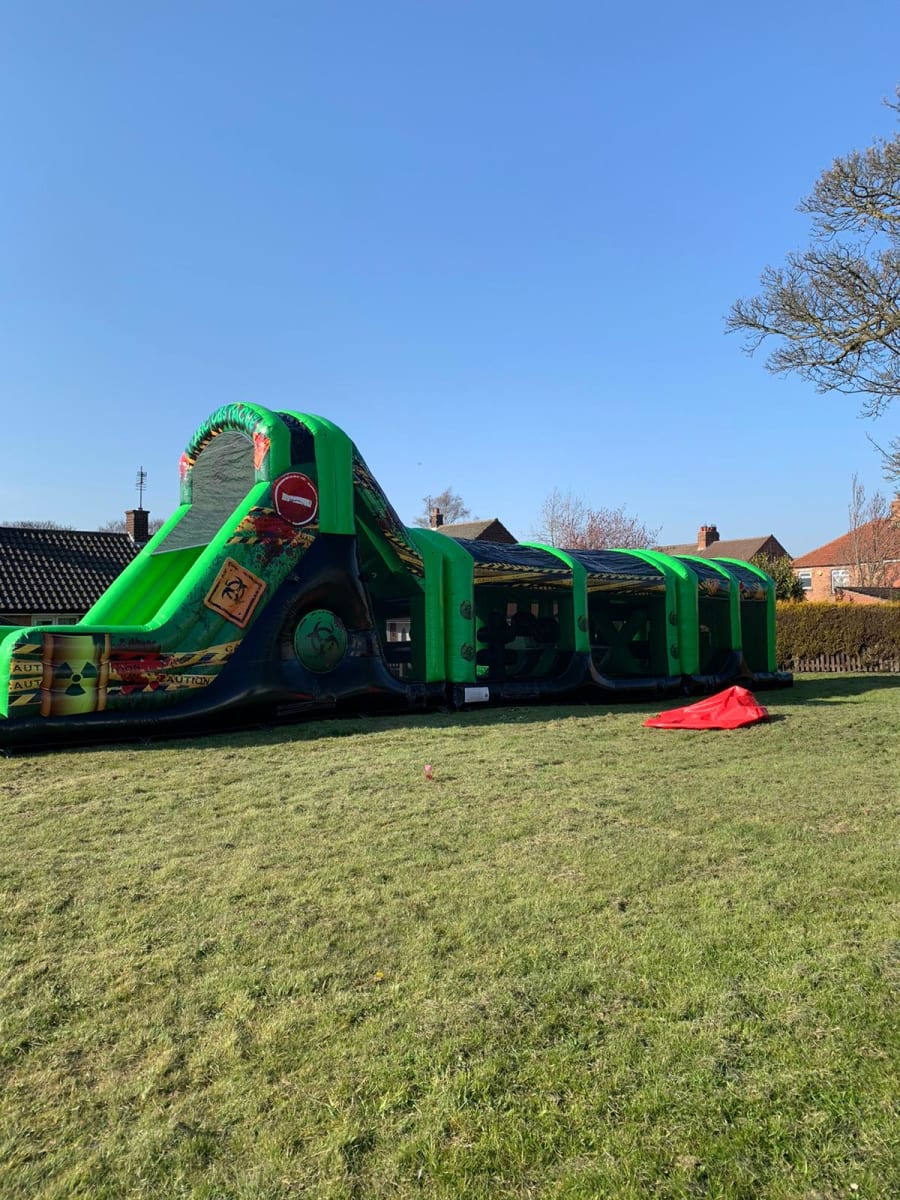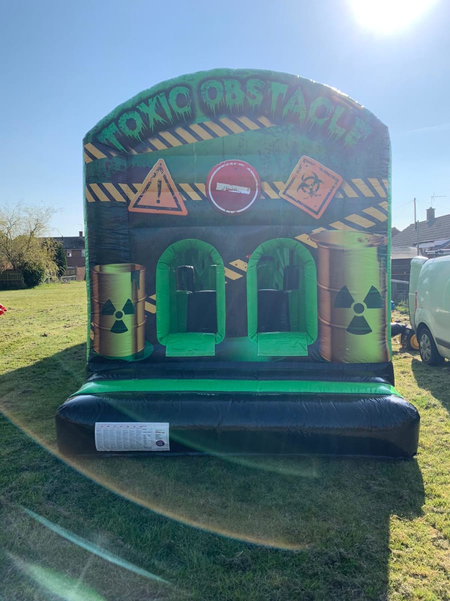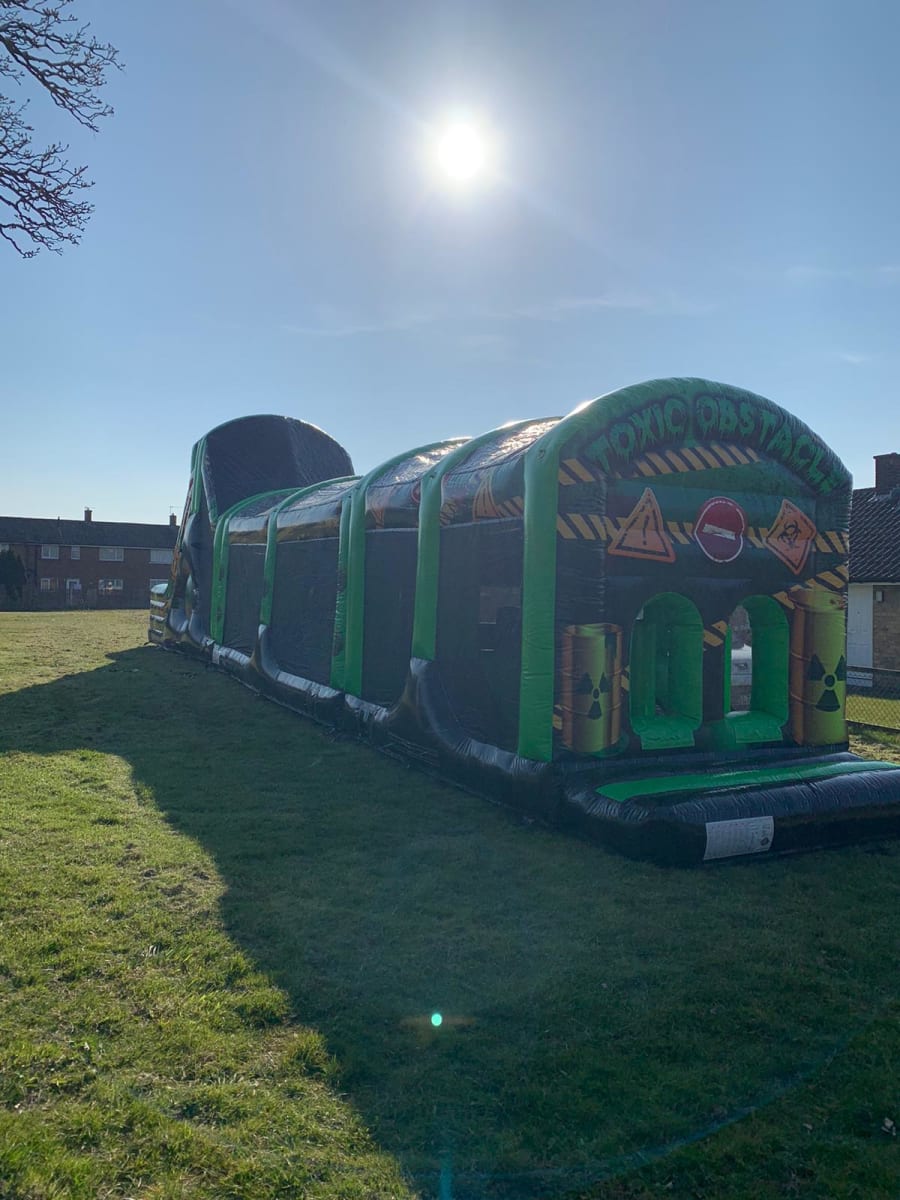 We have many different Inflatable Assault Courses to chose from on our website. This one is 70ft long with toxic themed laser printed artwork and colour scheme. This assault course is perfect for adults and children but unlike our standard assault courses this one has a 18ft mega slide fitted which has a 10ft platform to make it that little bit harder to race your rival to the finish. Our assault courses are great for many events like birthdays, fairs, galas, corporate team building and school end of term events.