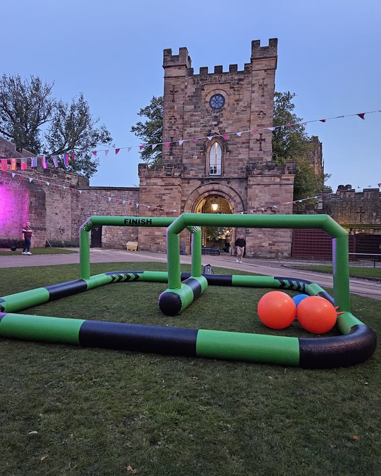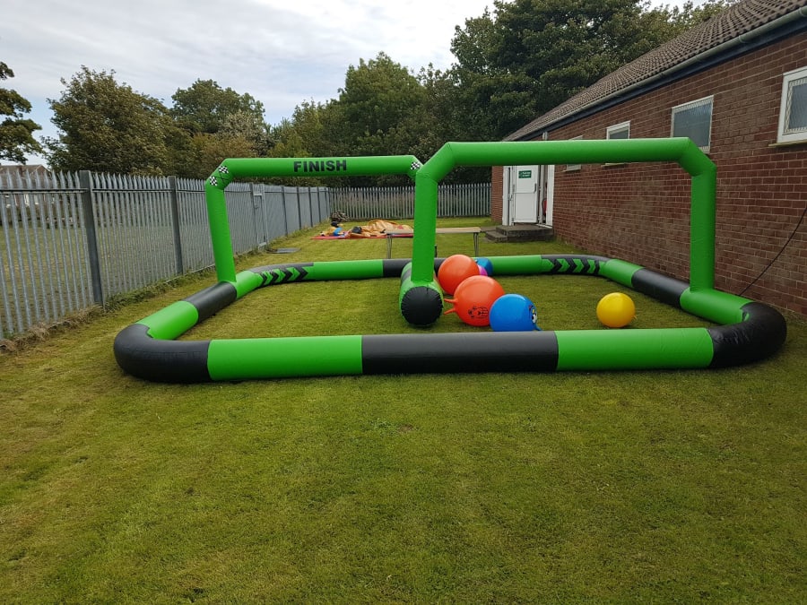 Our Space hopper Grand Prix Track is a real crowd pleaser and will keep everybody entertained with its high energy octane racing for hours, the space hopper grand prix track comes with 6 space hoppers 3 for adults and 3 for children and can be used for many different events which include School Fetes, Team Building, Birthdays,and Corporate Events to name a few. That's what makes this a great addition to any event. If you would like anymore info on this please just give us a call on 07956455557 or use the Contact Us.