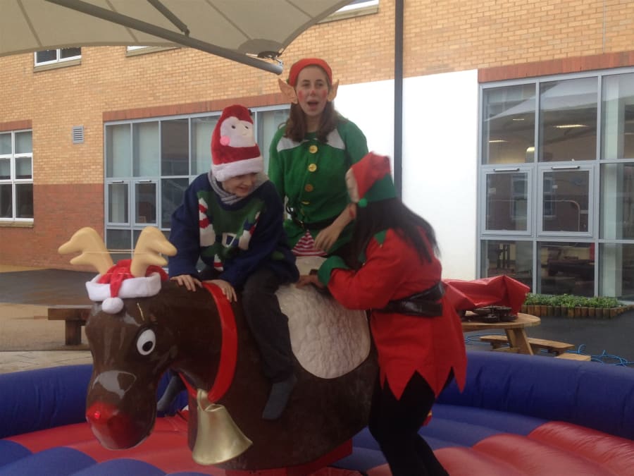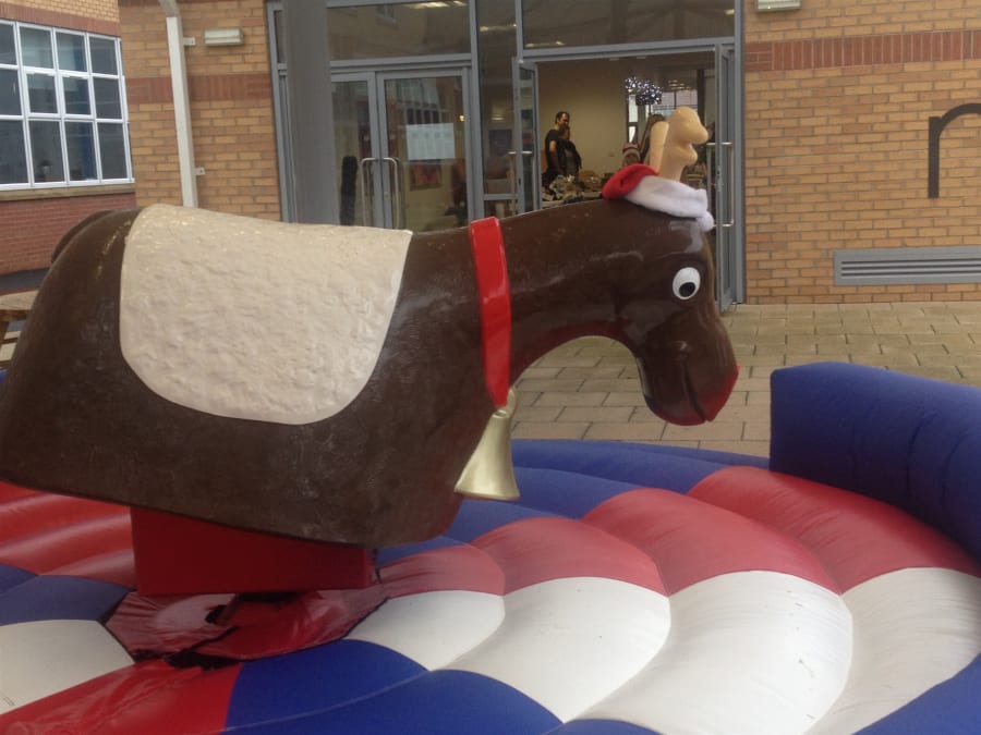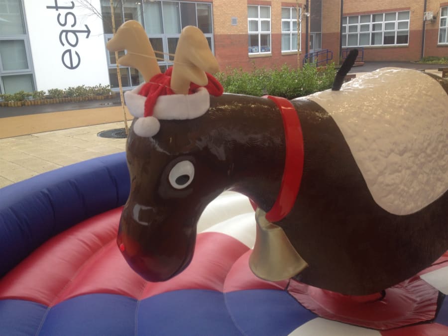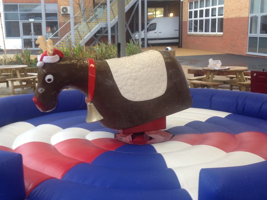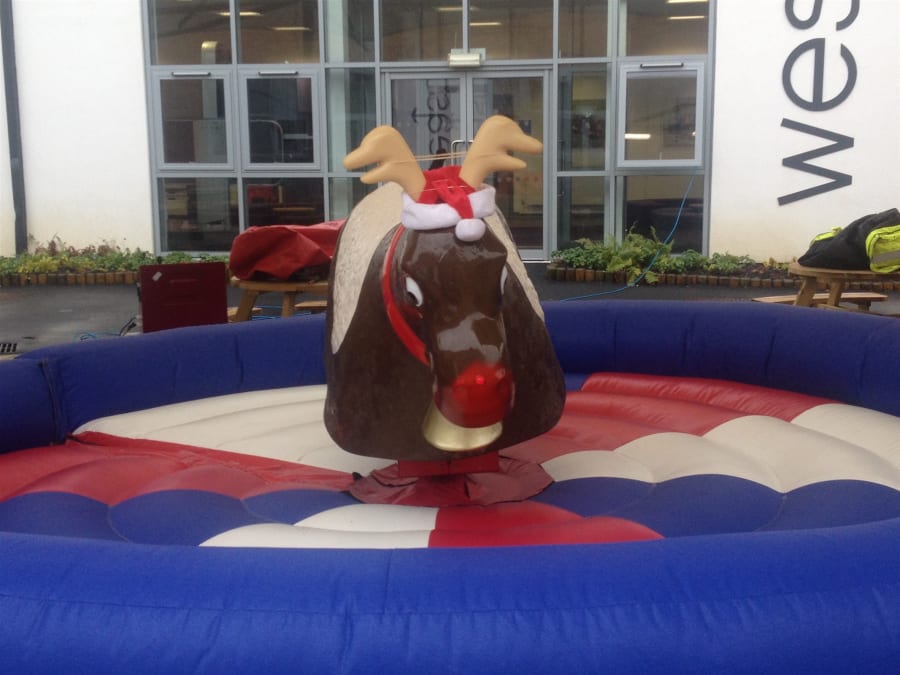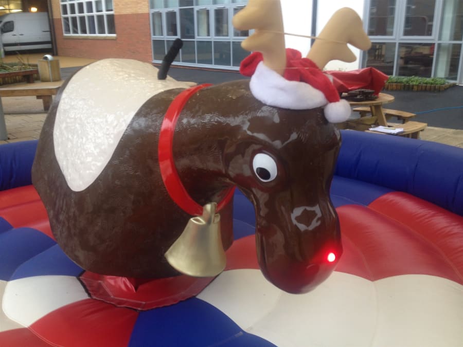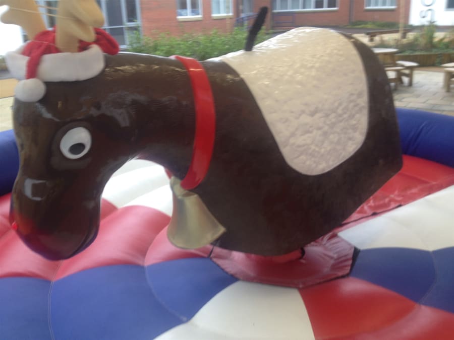 Why not make your Christmas a little bit different with Rudolph the red nosed Rodeo Reindeer, he would love to come to your Christmas party or event with his festive hat and big red flashing nose. Rudolph is suitable for both adults and children so he could keep the full family entertained for hours . We cover all of north east with our Rodeo Reindeer which includes Newcastle, Durham, Middlesbrough, Sunderland, Hartlepool, and much more. Area needed for set up of our reindeeris: 16x16 feet for inflatable bed. And the height of any ceilings must be at least 9 feet.