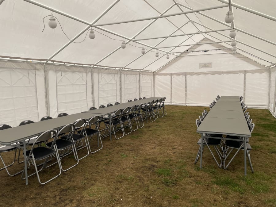 This robust top quality marquee is great for many different events and measures 6m wide by 12m long it comes with the added extra of ground bars which make the marquee a lot more stable. we do have many different extras which can be added to your hire, 6mx12m Carpet Marquee Flooring, Chairs, 8 Piece lighting kit from 25, 8ft Table hire from 12, Retro Arcade Machines & Games Tables and Mobile Disco Hire.