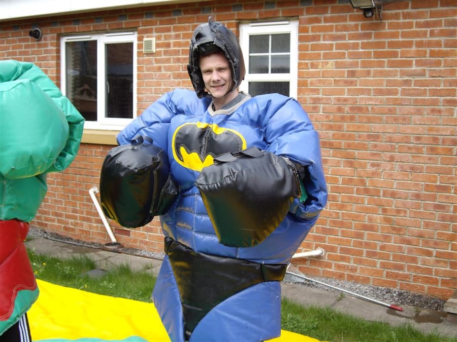 Batman v Hulk adult superhero wrestling suits. Why not try our comic book superhero wrestling suits they are a fantastic alternative to the usual wrestling suits. The aim of the game is to push, pull, belly bounce and try with all your strength, whit and super powers to get the other superhero out of the circle on the mat or pin them on the floor. This game is as much fun for the spectators as it is for the contestants so why not give them a go and unleash your superhero powers on your next opponent. What you will get with your hire is 2 superhero suits, 2 helmets, 2 sets of gloves and 1 mat. the age limit on these suits is 12 yrs To 70yrs old and are suitable for indoor or outdoor use.